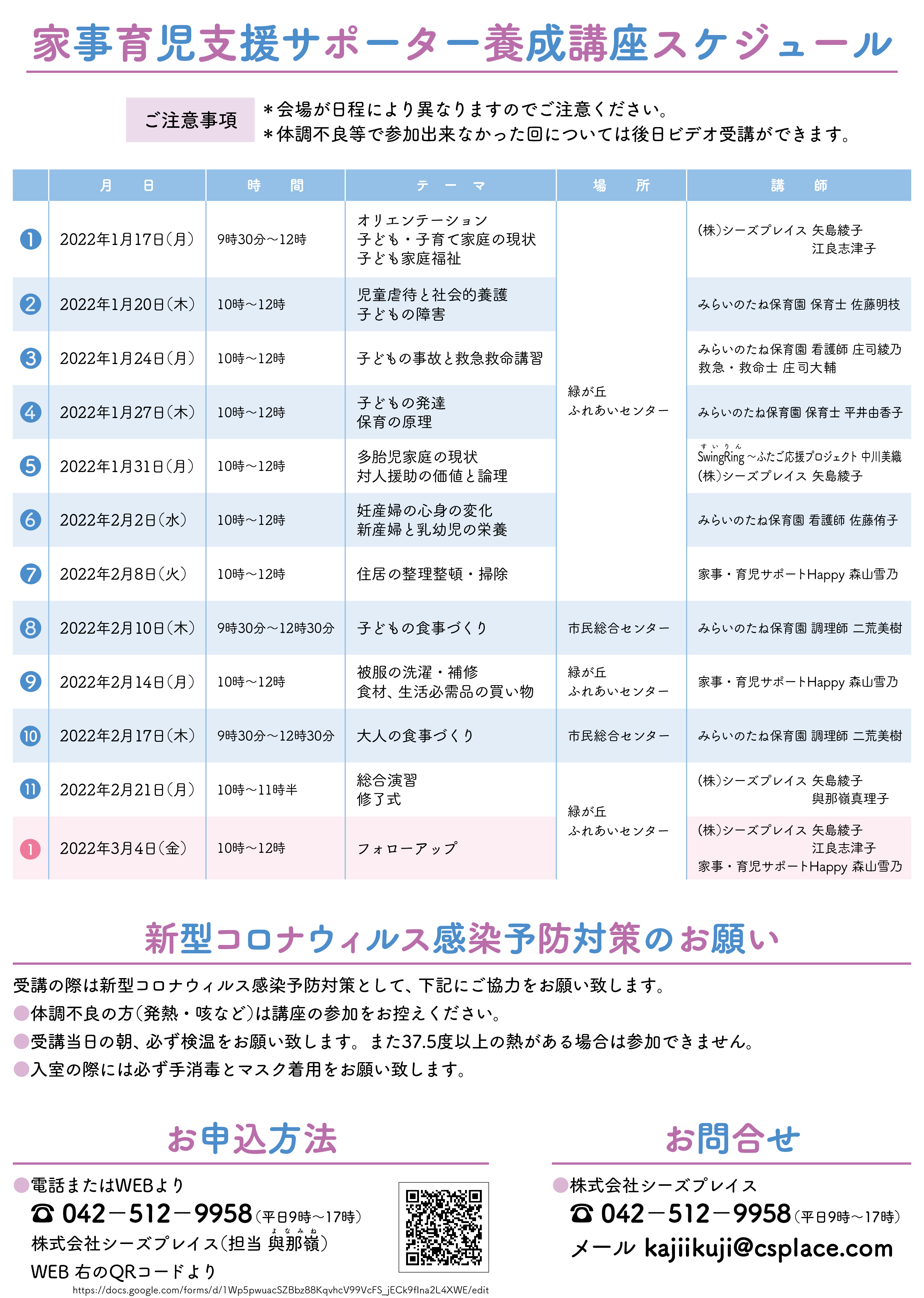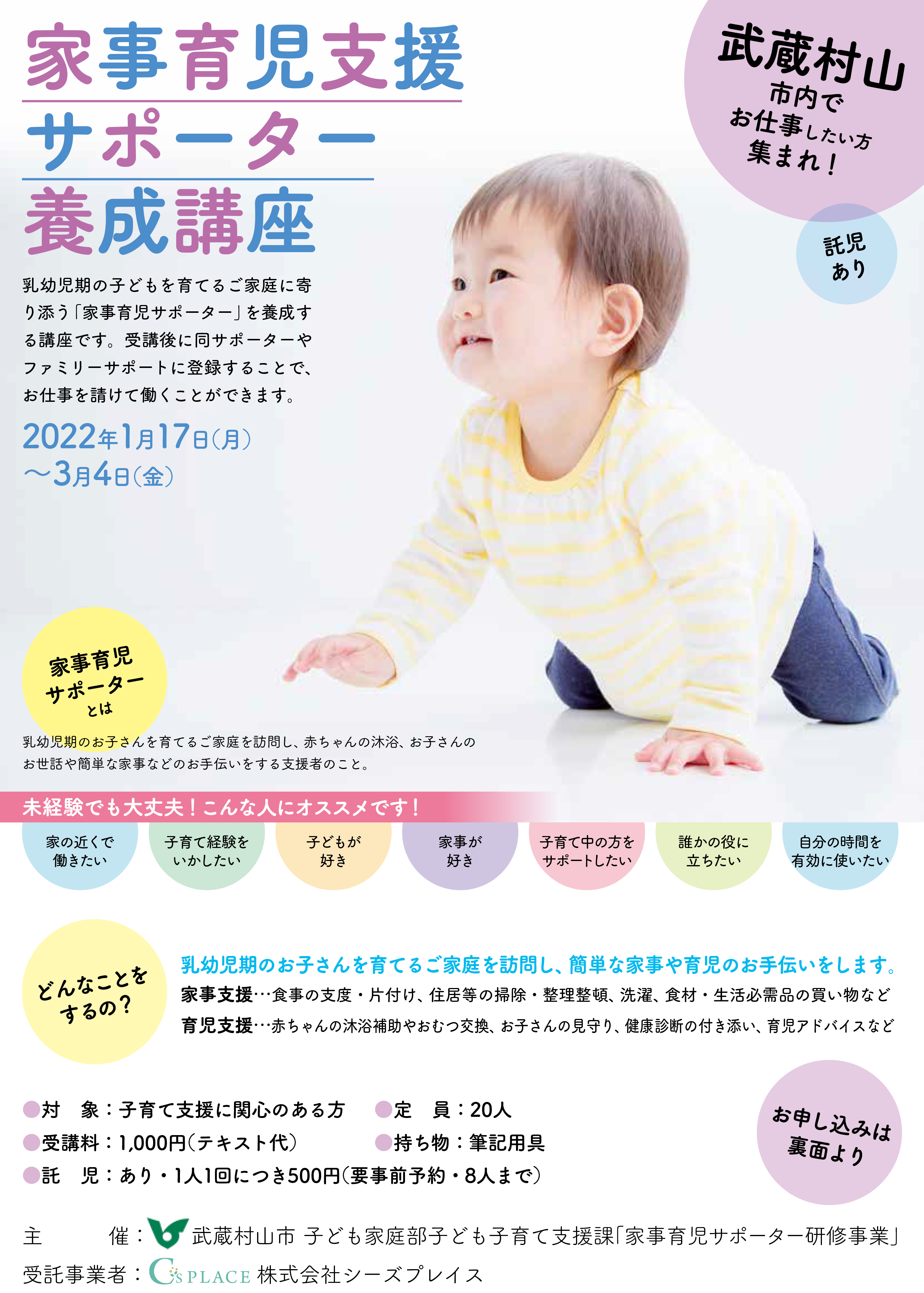 [募集開始]家事育児支援サポーター養成講座1~3月期