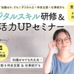 2023年9月6日 / 最終更新日時 : 2023年9月20日 csplace_ltd NEWS 【新宿区主催】デジタルスキル研修&就活力UPセミナー 「知識ゼロでも大丈夫!就職活動を伴奏支援&仕事紹介も」 今年度シーズプレイスが受託した、デジタル人材を育成するセミナーPCの貸し出しや託児もあり、研修やセミナーをより多くの方に受講していただける環境づくりに努めています。 […]